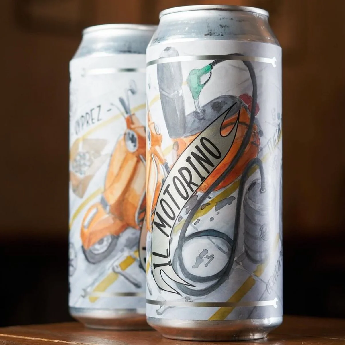 Watercolour adapted digitally for this label: an Italian pilsner collaboration between Cerveza Cyprez and Cerveza Bruer. Inspiration came from the quick, energetic Vespa – an icon of Italian street life.