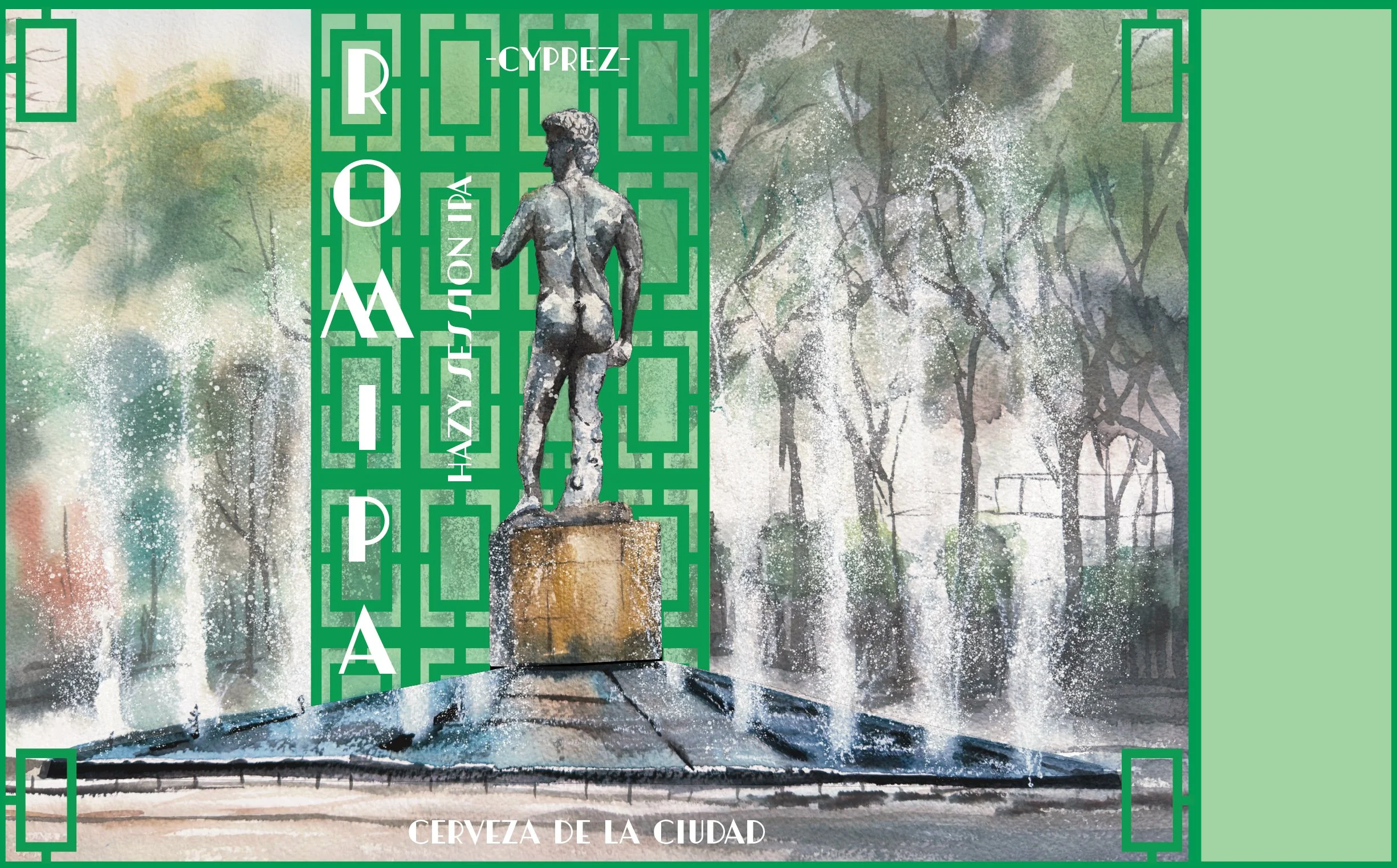 Illustration in watercolour, digitally rendered for the label of an IPA by Cerveza Cyprez, a craft brewery in Mexico City.