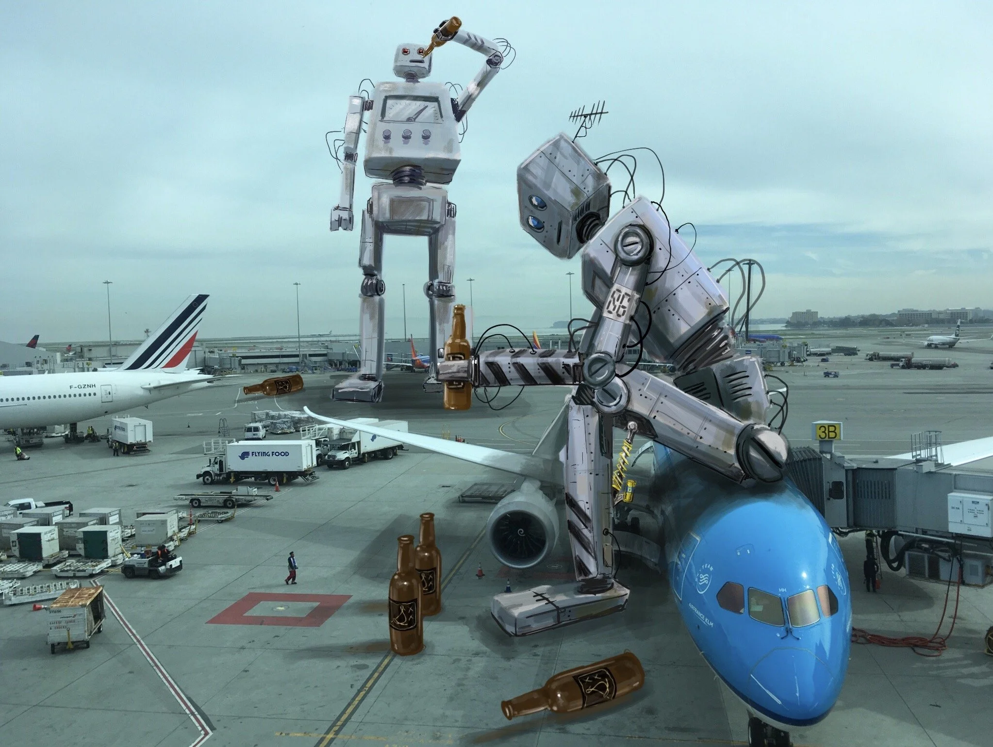 A collaborative project between me and photographer Antonio Gallardo. Using his photographs as a base, I developed a series of digital illustrations featuring robots doing everyday things in unusual, yet familiar, places.