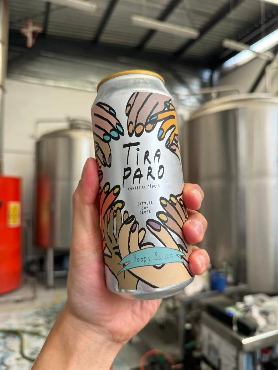 A charity beer in collaboration with Casa de la Amistad, raising funds for cancer research. The label brings together hands from different people, rendered in bold line work and a warm palette.